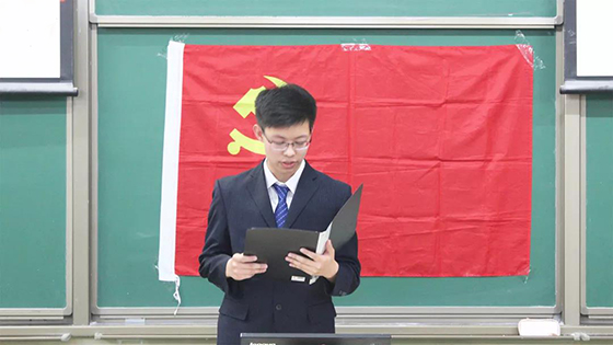 参加本次答辩的学生身着正装,严肃认真,讲话铿锵,展现了数理学子的气质和风貌。16级的国防生,身着军装,笔直飒爽,他们的眼中闪烁着坚毅的光芒,那是对中国共产党的渴望;17级的学生尽管仍有些稚嫩,但是他们对党的忠诚和渴望加入党组织怀抱的决心不输他人。每位在台上的学生流利地表达着自己对党的认识,他们想要为人民服务的心溢于言表,他们炽热跳动的心蓬勃待发。